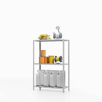 Металлические стеллажи ТС Лайт удобны для хранения инструментов, столярного и слесарного инвентаря, расходников, материалов, крепежа в гараже, мастерской, рабочем кабинете. Полки можно устанавливать на любой высоте и компактно хранить на одном стеллаже оборудование и предметы разного размера, используя стеллаж максимально эффективно. Полимерное покрытие устойчиво к воздействию влаги и низких температур, поэтому стеллажи можно устанавливать даже в неотапливаемых гаражах. Для удобства хранения фурнитуры, крепежей и других мелких предметов можно использовать пластиковые контейнеры разного размера.